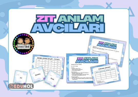 Zıt Anlamlı Kelime Avcıları, öğrencilerin zıt anlamlı kelimeleri eğlenceli ve etkileşimli bir şekilde öğrenmeleri için tasarlanmış hareketli bir kart oyunudur. Bu öğretim kaynağını, 2-3. sınıf öğrencileriyle rahatlıkla kullanabilirsiniz.