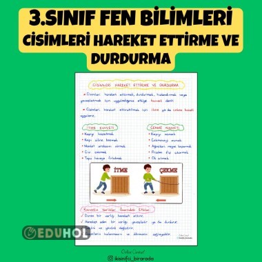 3.SINIF FEN BİLİMLERİ CİSİMLERİ HAREKET ETTİRME VE DURDURMA DEFTER NOTU