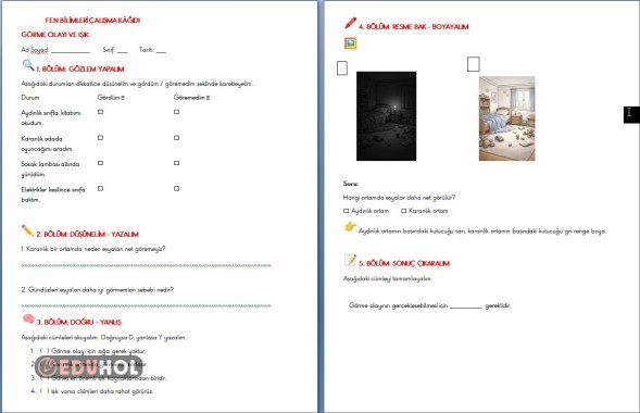 3.SINIF FEN BİLİMLERİ IŞIK VE GÖRME ÇALIŞMA KAĞIDI