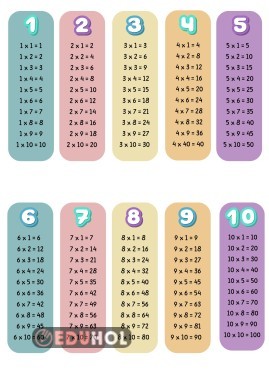 Farklı boyutlarda hazırlanmış çarpım tablosu