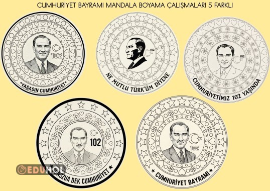 Birbirinden güzel 5 farklı Cumhuriyet Bayramı mandala boyama çalışmalarımız.