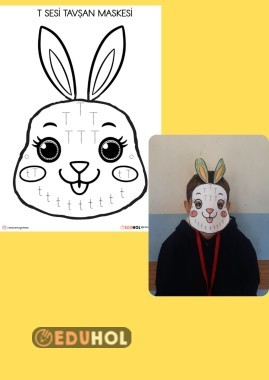 T sesi tavşan maskesi. Değerli öğretmenlerim yanlardaki küçük deliklerden delip paket lastiği yada normal lastik ile maskelerinizi oluşturabilirsiniz.
