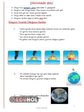 3.SINIF FEN BİLİMLERİ- DÜNYA'NIN ŞEKLİ- DEFTER NOTU