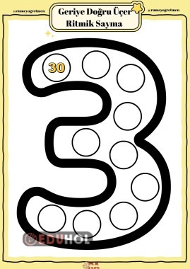 Geriye üçer ritmik sayma etkinlik kağıdı hazır. Dilerseniz deftere yapıştırma olarak da kullanabilirsiniz. Faydalı olması dileğiyle.
