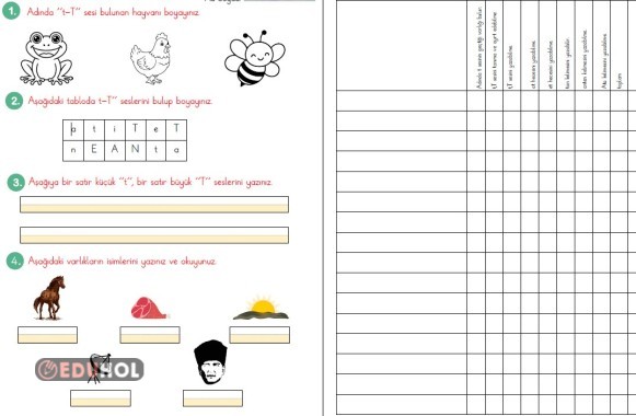 t, T sesi biçimlendirici değerlendirme etkinliği ve ölçeği.