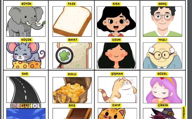 Deftere Yapıştırmak için Zıt Anlamlı Kelimeler Görsel Çalışması ( 1)