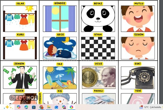Deftere Yapıştırmak için Zıt Anlamlı Kelimeler Görsel Çalışması (2)