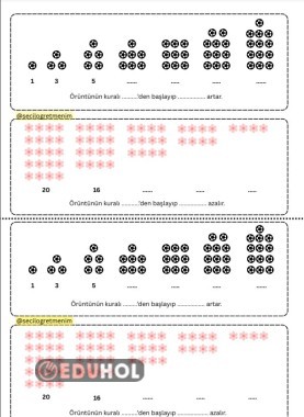 ''Şekil örüntüsünün sayı örüntüsüne dönüştürülmesi '' Bir sayfa iki öğrenci için etkinlik yer almaktadır.
