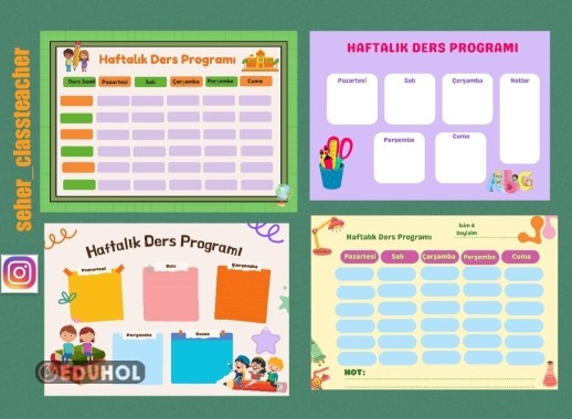 PDF olarak indiriniz. İstediğiniz renkli şablonu resim olarak yatay word dosyasına ekleyip, kendi sınıfınıza ait ders programını yazabilirsiniz.💐