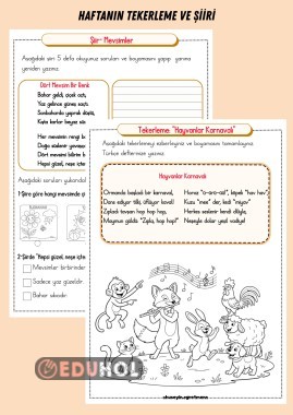 Bu Hafta İçin Hayvan Karnavalı Tekerlemesi ile Mevsimler Şiiri Hazırladım.