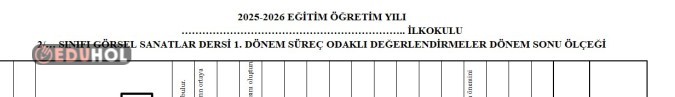 2.SINIF GÖRSEL SANATLAR 1.DÖNEM SÜREÇ ODAKLI DEĞERLENDİRME ÖLÇEKLERİ (30 ÖĞRENCİ)
