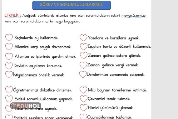 2.SINIF HAYAT BİLGİSİ GÖREV VE SORUMLULUKLARIMIZ ETKİNLİĞİ