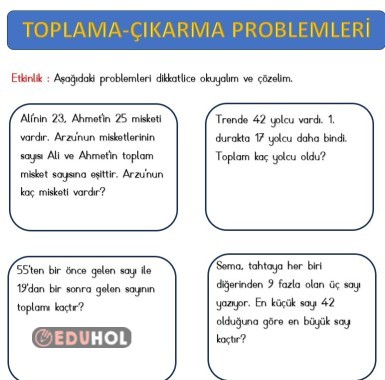 2.SINIF MATEMATİK TOPLAMA VE ÇIKARMA PROBLEMLERİ
