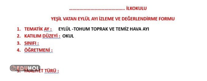 YEŞİL VATAN AYLIK İZLEME DEĞERLENDİRME FORMU