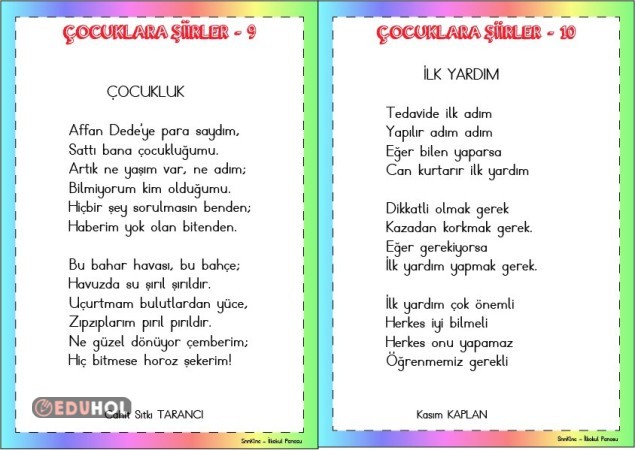* Çocuk Şiirleri Serisi - 5 * A5 boyutunda hazırlanmış olup A5 ve A4 boyutunda çıktı alabilirsiniz.