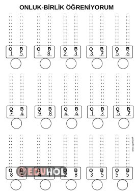 ONLUK BİRLİKLERİ BONCUKLARLA İFADE ETME- SAYILARIN OLMADIĞI BOŞ ŞABLON DA MEVCUT. SADECE 20'YE KADAR DA SİZ SÖYLEYİP VEYA YAZARAK HAZIRLAYABİLİRSİNİZ.