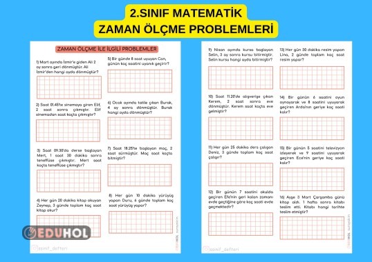 2.SINIF MATEMATİK ZAMAN ÖLÇME PROBLEMLER