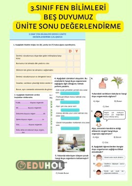 3.SINIF FEN BİLİMLERİ BEŞ DUYUMUZ / DUYU ORGANLARI ÜNİTE DEĞERLENDİRME