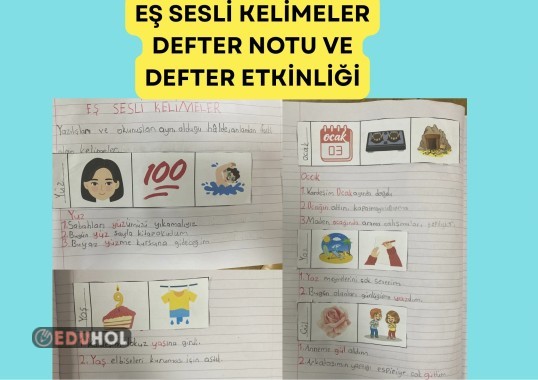 EŞ SESLİ KELİMELER DEFTER NOTU VE DEFTER ETKİNLİĞİ