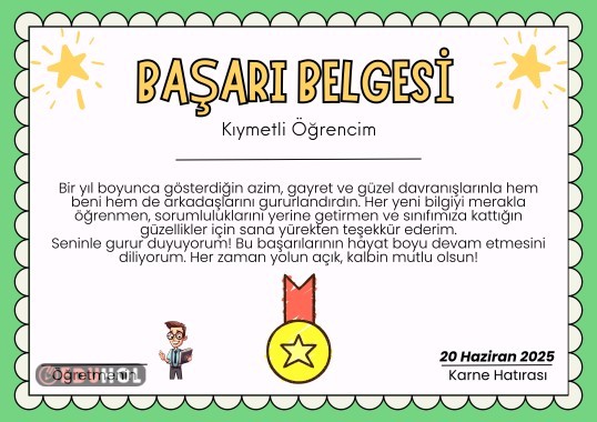 Öğretmen kısmı hem bayan hem erkek öğretmen şeklinde içerikte yer almaktadır. 4 farklı renk mevcuttur. Etiketler: başarıbelgesi ilkokul okulöncesi ortaokul karne iyitatiller