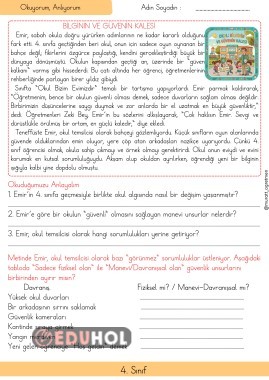 Okul sevgisi temalı okuma anlama metnimiz 📝