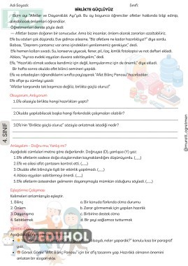 ''Afetler ve Dayanıklılık'' Okuma Anlama Metni