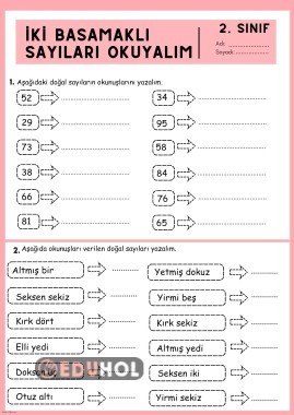 İki Basamaklı Sayıları Okuyalım Çalışma Sayfası