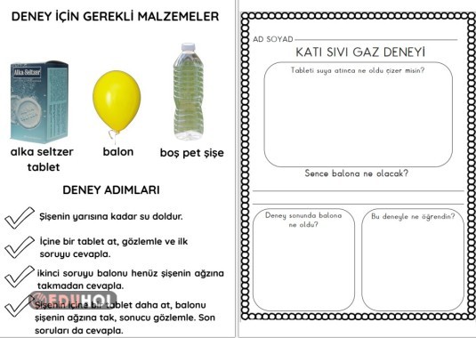 Karbonat ve sirkeyle uğraşmak yerine alka seltzer tabletle gaz halini deneyleştirebiliriz. Etiketler: fen deney katısıvıgaz maddeninhalleri