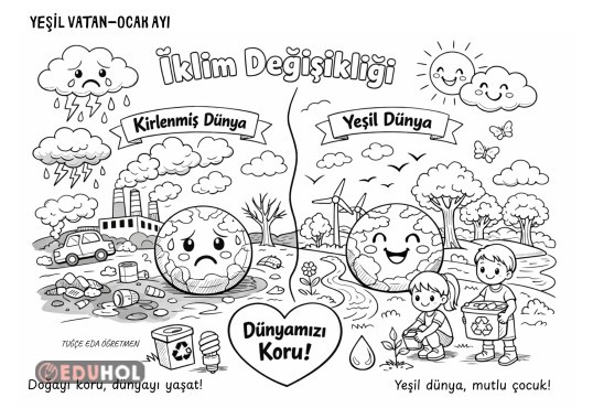 YEŞİL VATAN-ocak ayı-iklim değişikliği boyama sayfası