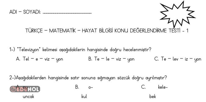 2.sınıf düzeyinde süreci değerlendirebileceğiniz tekrar niteliğinde sorulardır.