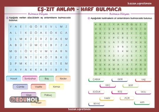 4.SINIF EŞ ZIT ANLAM KONU TEKRARI HARF BULMACA