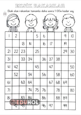 Birer birer yüze kadar sayma. Eksik olan sayıyı yaz ve say