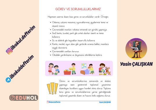 - 2. sınıf hayat bilgisi dersi "GÖREV ve SORUMLULUKLARIMIZ" konusundaki deftere yazılabilecek notlar.