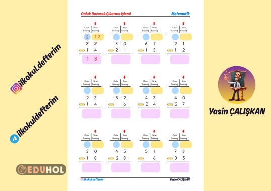 - 2.sınıf örencilerin onluk bozarak çıkarma işlemini kavraması sürecinde kullanma amacıyla hazırlanmıştır.