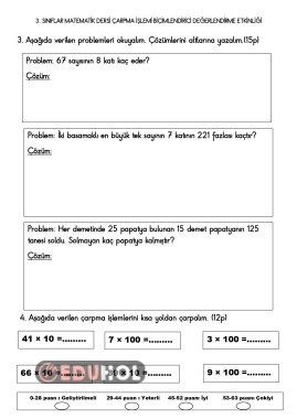 ÇARPMA İŞLEMİ DEĞERLENDİRME