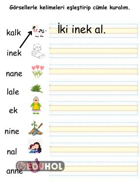 ELAKİN grubu görsel eşleştirme ve verilen görsellerle cümle oluşturma etkinliği