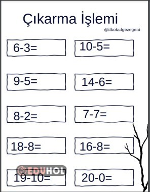 1. Sınıflar İçin Çıkarma İşlemi Etkinliği