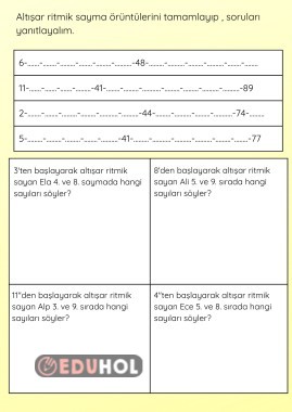 İnteraktif etkinliğim altışar, yedişer, sekizer, dokuzar ritmik saymalar ve problemlerden oluşan 4 sayfalık pdf