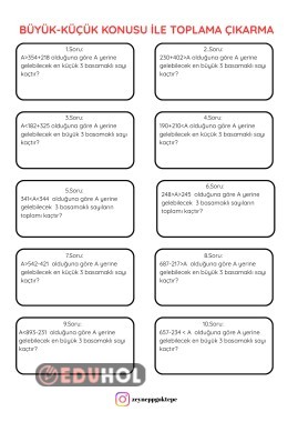 Toplama çıkarma büyüklük küçüklük konusu ile