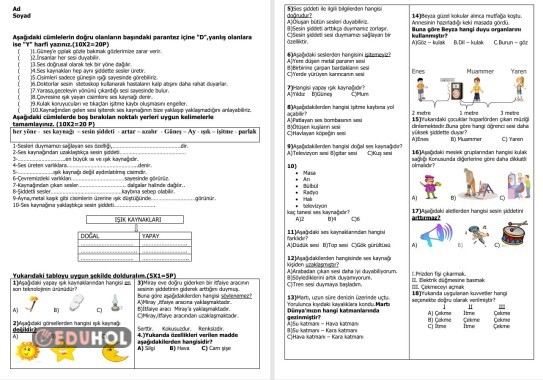 3.Sınıf Fen Değerlendirme