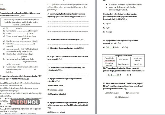 3.SINIF HAYAT BİLGİSİ SINAVI
